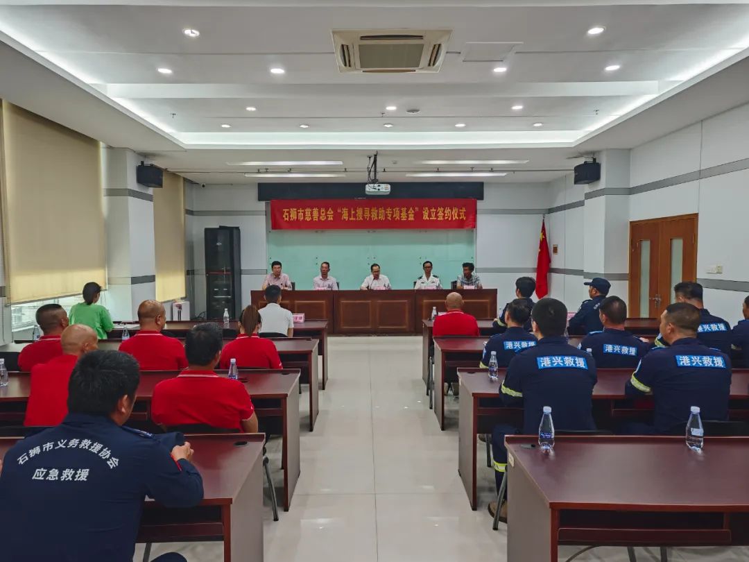 5月30日下午,石獅市慈善總會“海上搜尋救助專項基金”設立簽約儀式舉行,該基金為泉州市首個海上搜尋救助專項基金。石獅市政府副市長張子牙、泉州海事局石獅海事處處長徐忠、石獅市慈善總會會長林自育,以及泉州市安捷海岸救援服務中心、泉州市港興海上義務救援中心、石獅市祥芝漁港義務救援協會等單位有關負責人出席簽約儀式。