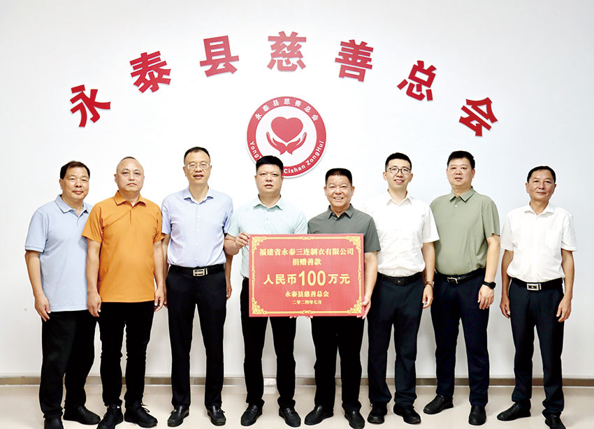 日前,福建省永泰三連制衣有限公司捐贈100萬元在永泰縣慈善總會設(shè)立“三連慈善專項基金”,旨在推動獎學(xué)助教等慈善活動,為永泰縣慈善事業(yè)注入新活力。