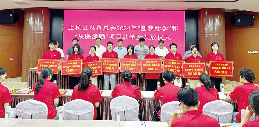 8月21日,龍巖市上杭縣慈善總會舉行了2024年“圓夢助學”和“從醫激勵”項目助學金發放儀式,一批即將跨入大學校門的困難學子和醫學專業大學生獲得了上杭縣慈善總會愛心項目的專項資助。