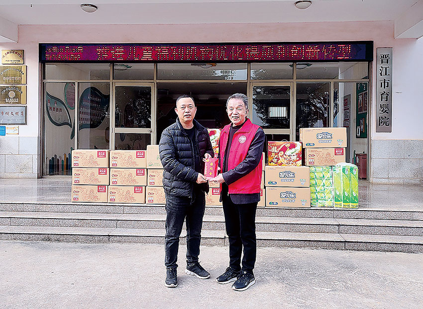 2023年春節前夕許連捷(右)赴晉江市育嬰院慰問