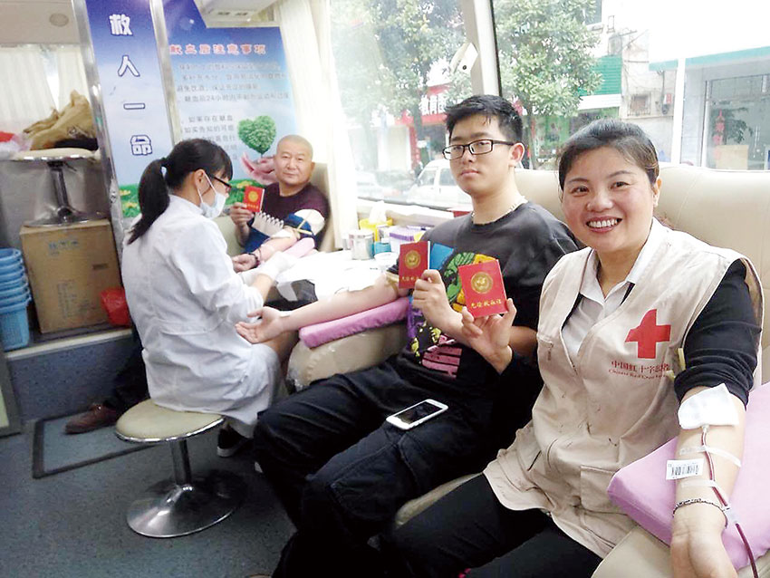 張銀珠(右1)帶頭參與獻血