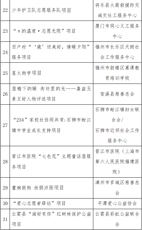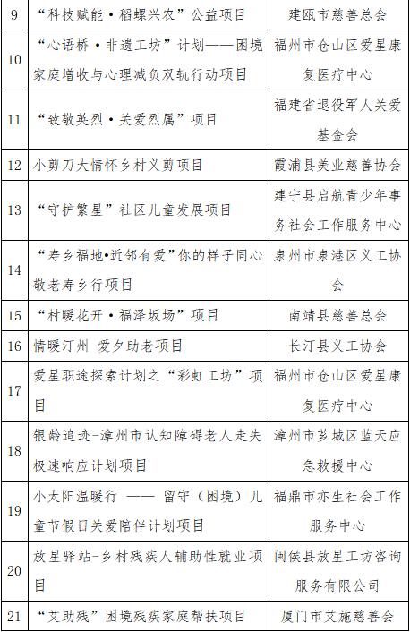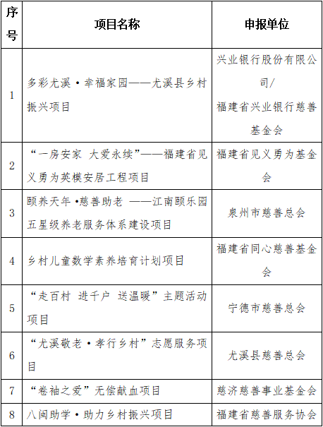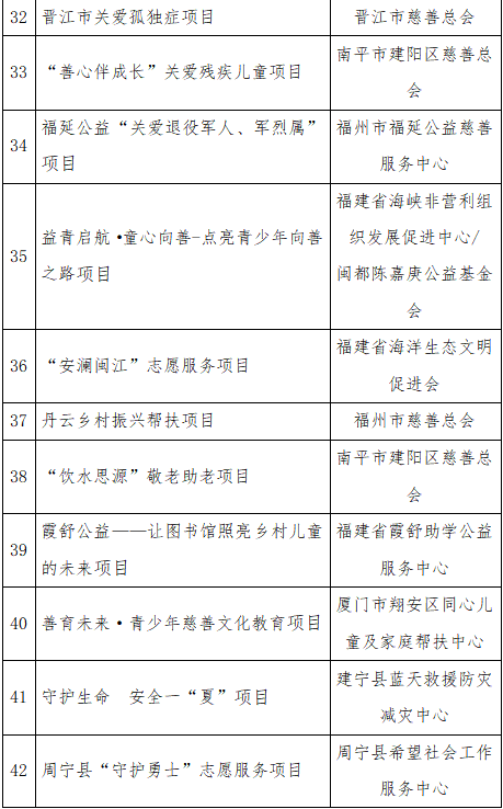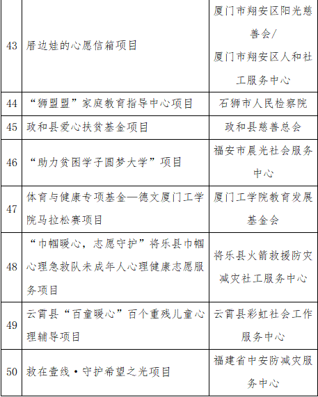 第七屆“善行八閩——公益慈善項目大賽”50個優秀獎項目名單