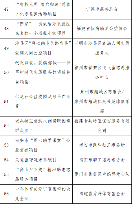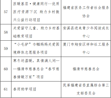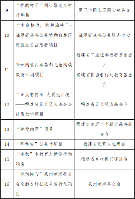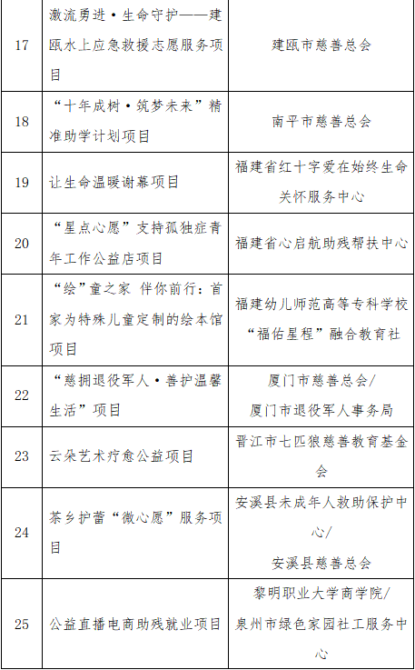 第七屆“善行八閩——公益慈善項目大賽”61個路演項目名單